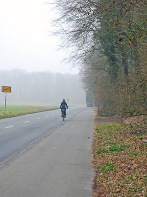 Das Hinweisschild "Radfahrer frei" sollte nach 100 Metern wiederholt werdenEin weiteres Anliegen der CDU ist es, eine Wiederholung des Verkehrszeichens zu erreichen, das die Nutzung des asphaltierten Weges für Radfahrer gestattet. Dieses Verkehrszeichen könnte in Höhe des Bereiches, wo der Fußweg / Radweg verschwenkt, angebracht werden und die Radfahrer erinnern, den Seitenstreifen zu nutzen.